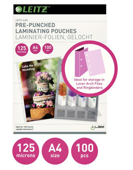 Lamineerhoes Leitz A4 met perforatieband 2x125micron EVA 100stuks