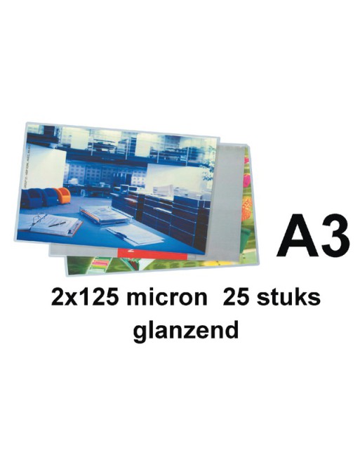 * Premium quality plastificeerhoes voor een glanzend en glashelder eindresultaat. * Diverse formaten en diktes leverbaar. * Dikte in micron per zijde (bijv. 2x125micron = totaal 250micron). * Door het unieke EZ-in systeem kunt u snel het te lamineren vel op de juiste plaats in het midden van de pouch leggen. * Ideaal voor posters, verwijzingen, landkaarten e.d. 1 pak x 25 stuk