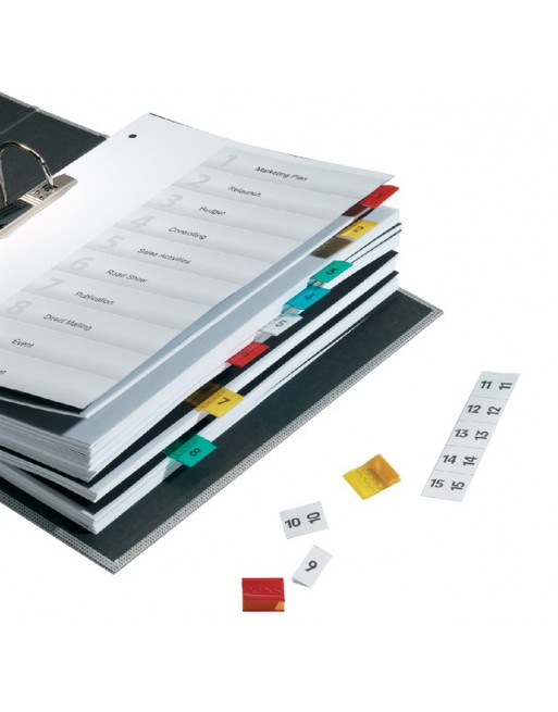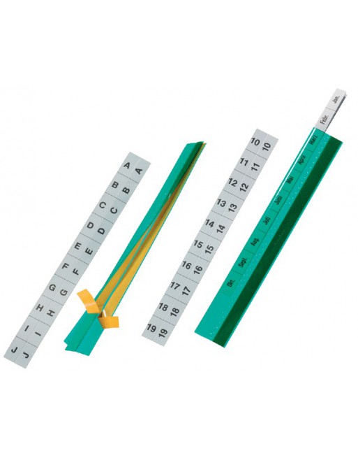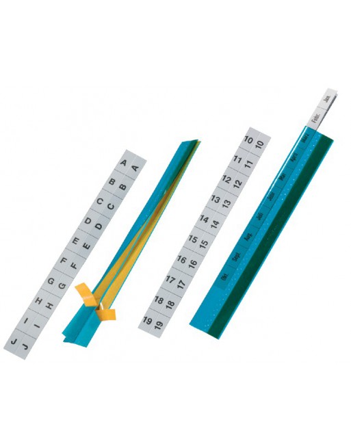 * Zelfklevende tabs om een duidelijke onderverdeling te maken in catalogi, mappen of kaartenbakken. * Verkrijgbaar in meerdere kleuren. * 200mm breed en op maat te knippen. * Geleverd met blanco én bedrukte A-Z insteekkaartjes. 1 pak x 5 stuk