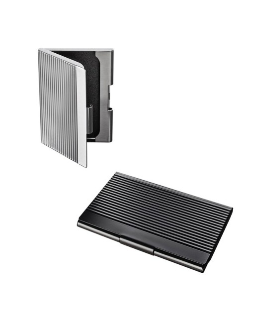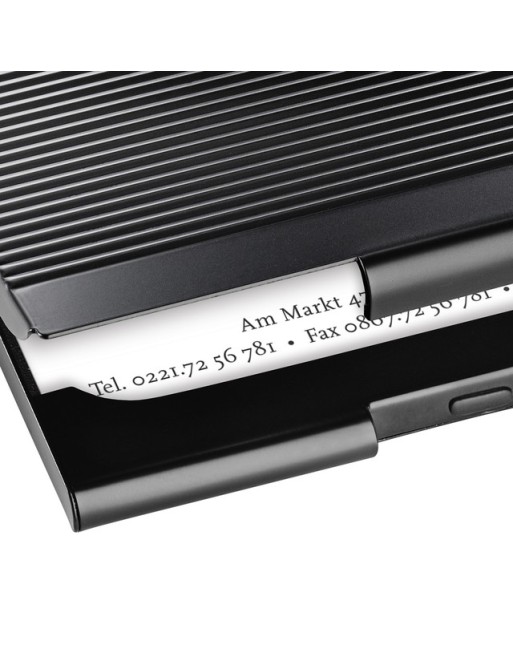 * Bewaar uw visitekaartjes in een beschermend etui. * Elegant en van hoge kwaliteit aluminium. * Mooi design met een zwart matte uitstraling. * Geschikt voor 20 visitekaartjes van max. 91x56mm.