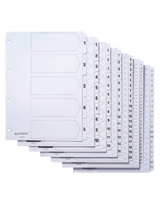 Tabbladen Quantore 4-gaats 1-5 genummerd wit karton