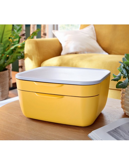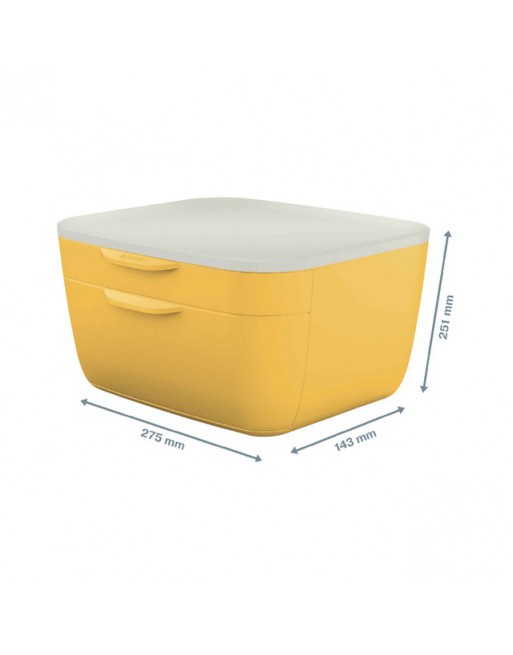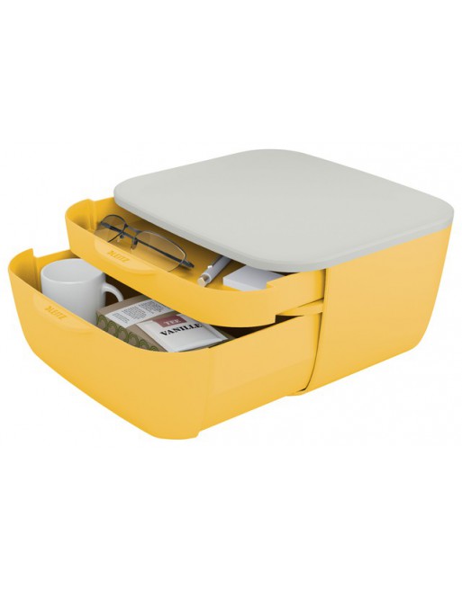 * De Cosy ladenblok is ideaal om al je essentiële dagelijkse spullen in op te bergen, zoals pennen, kabels en notitieboekjes. * Deze eersteklas ladenblok is de perfecte aanvulling op jouw (thuis)kantoor om ervoor te zorgen dat je de hele dag ontspannen en productief blijft. * Een kleine en een grote lade voor het opbergen van spullen zoals pennen, notitieboekjes en kabels, BPA en BPS vri. * Afmeting tussen A4 en A5. * Plasticvrije verpakking. * De Cosy Range van Leitz combineert comfort in huisstijl met eersteklas kwaliteit om een positieve en productieve werkomgeving te creëren.