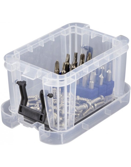* Deze kleine opbergbox heeft een afsluitbaar deksel met 2 clips, waardoor de inhoud beschermd wordttegen stof en vuil. * Stapelbaar met of zonder deksel. * Antislip rand. * Versterkte bodem en hoeken voor de duurzaamheid. * Gemaakt van slagvast polypropyleen en is 100%BPA (Bisfenol A) vrij! * Ideaal voor het organiseren van kleine objecten, waaronder nietjes,naalden, elastiekjes, knopen, paperclips, pailletten, schroeven etc.. * Buitenafmetingen: 10,5x7x6cm. * Binnenafmetingen: 7x5x5cm. * Gewicht: 0.25kg. * Inhoud: 0.2 Liter.