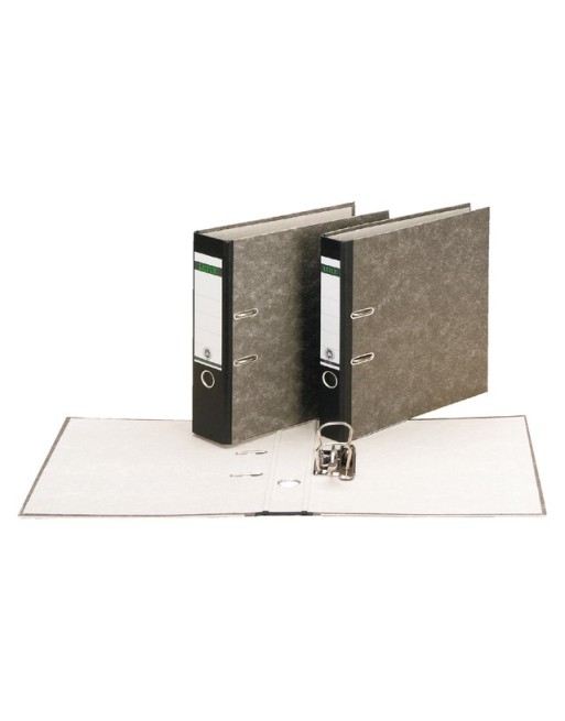 * Omslag van karton (RC) met marmerpapier overtrokken. * Met duimgat, sleuven, randbeschermers en schutblad. * Gepatenteerd 180º mechaniek, voor een 50% bredere opening en 20% sneller archiveren. * Geplakt rugetiket. * 100% recycled papier en karton. * Blue Angel keurmerk. * 5 jaar garantie op het mechaniek. * Gratis templates voor rugetiketten via www.leitz.com/easyprint. 1 stuk