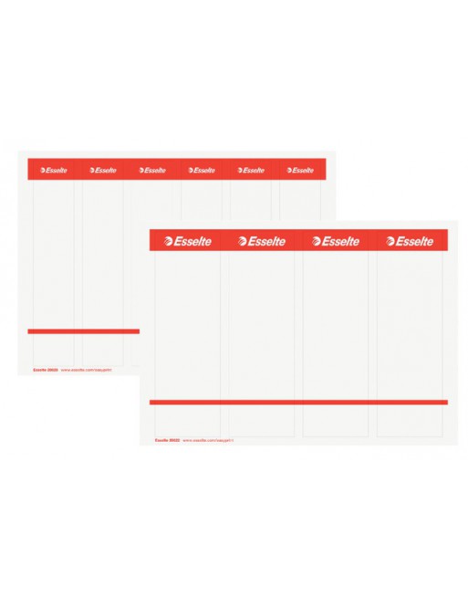 * Ordnerrugetiketten op A4 vellen. * Voor Esselte ordners met etikethouder. * Voorbedrukte rugetiketten van karton 130 g/m². * Geschikt voorinkjet- , laserprinters en kopieermachines. * Gratis templates via www.esselte.com/easyprint. 1 pak x 50 stuk