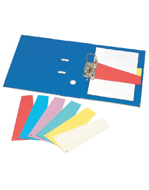 * Gekleurde scheidingsstroken voor het maken van een gemakkelijke onderverdeling in uw dossiers en ordners. * Afmetingen: 240x105/55mm. * Zwaar 190gr manillakarton. * Gemaakt van 100% gerecycled materiaal. * 2-gaats. * Met Blauwe Engel keurmerk. 1 pak x 100 stuk