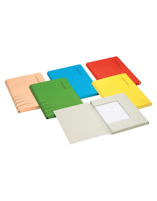 * Ideaal voor het opbergen en vervoeren van documenten. * Dankzij de drie kleppen vallen de documenten niet uit de map. * In zwart gedrukte projectindeling op de voorzijde om elke map gemakkelijk te kunnen markeren. * Gemaakt van 225 g/m² chloorvrij en zuurvrij Colorkraft karton. * FSC®-gecertificeerd. * Folio formaat 240x348mm. 125 stuk