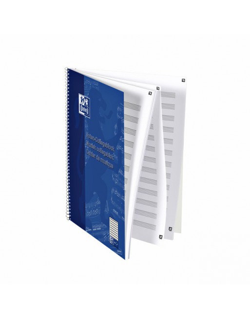 * Dit muziek collegeblok heeft een soepele kartonnen omslag met een enkel spiraal. * Het blok is 360 graden open te leggen. * De notenbalken hebben 5 lijnen voor het noteren van muzieknoten. * Deze muziek collegeblokken zijn zeer geschikt voor het componeren en opschrijven van eigen muziekstukken. * Dankzij het Oxford Optik Paper heb je maar liefst 50 vellen papier van gegarandeerd goede kwaliteit, hierdoor kun je op beide zijdes van het papier schrijven zonder doordrukken. * Tevens compatible met de gratis SCRIBZEE app. Scan, save en deel eenvoudig al je muziekstukken. * Met Optik Paper®; laat geen inkt door. * Hoge kwaliteit 90 grams papier, extra glad en extra wit. * Stevige gelamineerde kartonnen kaft voor een optimale stabiliteit. * Voor het vastleggen van je inspiratie. * A4+ muziek collegeblok, spiraalbinding, 4-gaats perforatie, 50 vel. * Dubbel spiraal voor 360° opening. * Notenbalk zonder hulplijnen. * Afscheurbare vellen.* Stevige kartonnen achterkant voor optimaal schrijfgenot. * EU Ecolabel gecertificeerd.