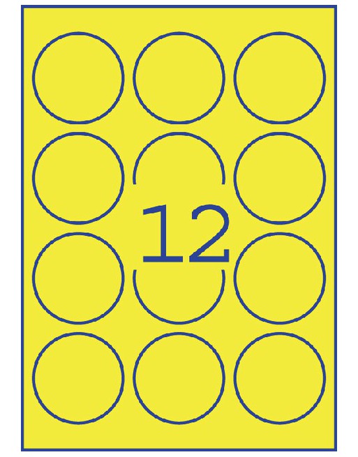 Etiket Avery L7670-25 63.5mm rond neon geel 300stuks