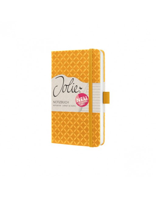 * Notitieboek met wit gelinieerd papier, 80grs (zuurvrij, houtvrij en elementair chloorvrij). * FSC gecertificeerd. * 174 pagina's waarvan 16 geperforeerd. * Het notitieboekje is voorzien van penlus, elastieksluiting, leeslint en opbergvak. * De cover is gemaakt van zacht kunststof met een 3D effect. * Formaat A6: 95x150x16mm. Kleur mango geel.