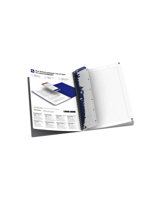 * Spiraalblok met verplaatsbare bladwijzer-liniaal. Om lijnen te tekenen, iets op te meten of om de laatste pagina aan te duiden. * Met flexibele, waterafstotende kunststof kaft in vrolijke kleuren. * Met blanco vel, om notities op het eerste en laatste vel te verbergen. * Met Optik Paper; laat geen inkt door, zelfs geen vulpeninkt. * Met de speciale Scribzee app scan je je gemaakte aantekeningen eenvoudig en snel, het PDF bestand verstuur je met gemak via email of sla je op in Dropbox of OneDrive. * Hoge kwaliteit 90gr papier, extra glad en extra wit. 1 stuk