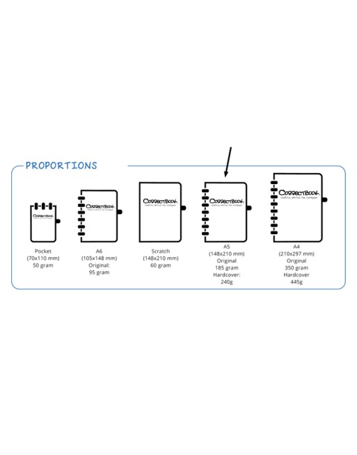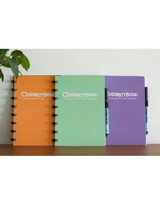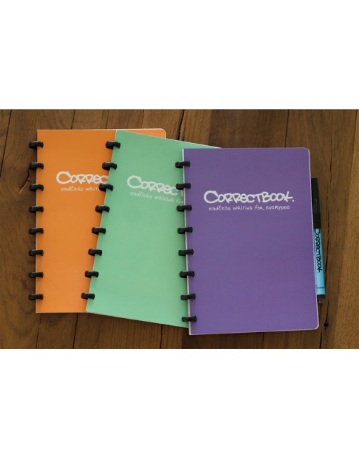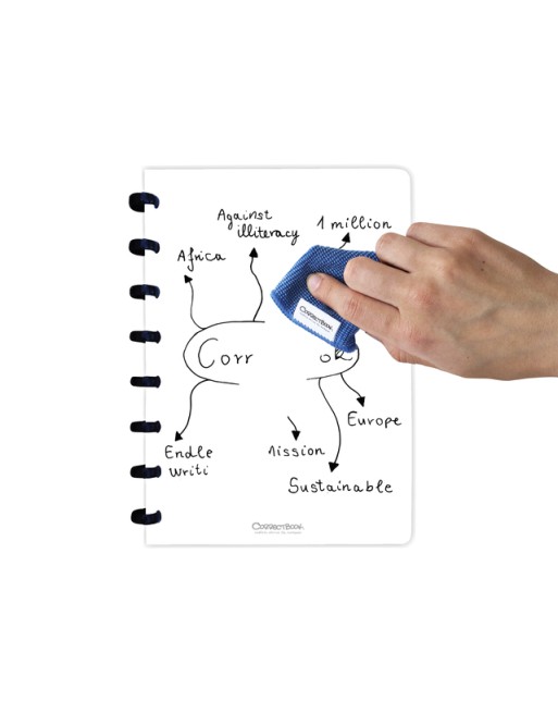 * Uitwisbaar en herbruikbaar notitieboek. * Vergelijkbaar met een whiteboard in schriftvorm, maar dan beter! * Aantekeningen drogen binnen enkele seconden en vlekken daarna niet meer. * Notities zijn enkel uit te wissen met de achterkant van de Correctbook Fineliner, het Correctbook Wisdoekje, de Correctbook Sponsjes of de Correctbook Schoonmaakset. * Correctbook Unbind & Click ringband: plaats pagina's in en uit het Correctbook. * Je kunt de notities digitaal opslaan met de gratis Correctbook PDF Scan App. * Het verhaal van Correctbook: 250 miljoen kinderen gaan iedere dag naar school zonder pen en papier. * Mede hierdoor zijn wereldwijd meer dan 750 miljoen mensen boven de 15 jaar analfabeet. * Daar komen wij tegen in actie. * Maak nu kennis met Correctbook; het uitwisbare notitieboek dat hier én in ontwikkelingsgebieden oneindig mee gaat. * Met de opbrengst van één verkocht Correctbook, kan Correctbook één kind in Afrika één trimester lang van uitwisbaar schrijfmateriaal voorzien.* Gratis meegeleverd: Zwarte Correctbook Fineliner en het Correctbook Wisdoekje.