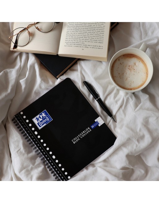* Speciaal gemaakt voor in de collegebanken. * Met de 17 gaats A5+ gelijnde collegeblokken van Oxford ben je goed voorbereid op ieder college. * Dankzij het Oxford Optik Paper® is het papier gegarandeerd van goede kwaliteit, hierdoor kun je op beide zijdes van het papier schrijven zonder doordrukken. * Tevens zijn alle Oxford collegeblokken compatible met de gratis Scribzee® app. * Hierdoor behoort overtypen van aantekeningen tot het verleden; scan, save en deel eenvoudig al je notities. * 80 vel. * Dubbel spiraal voor 360° opening. * Gelijnd met uitscheurbare vellen om makkelijk op te bergen. * Kartonnen kaft. * EU Ecolabel gecertificeerd.