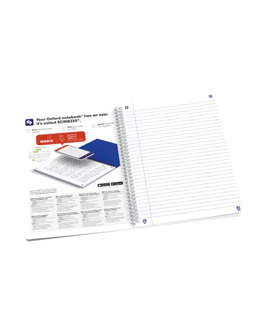 * Schrijven op papier is de snelste, eenvoudigste en meest flexibele manier om informatie vast te leggen. * Daarnaast is bewezen dat je de zaken beter onthoudt en sneller begrijpt. * Dit alles is samen te gebruiken met de SCRIBZEE® app. * Dankzij deze app op je smartphone kun je je notities inscannen, organiseren, bekijken en delen en heb je je notities altijd en overal bij de hand. * Op het extra dikke (90grams), gladde Optik Paper® kun je op beide zijde van het papier schrijven zonder dat de inkt doordrukt,zelfs als je schrijft met vulpen. * De omslag heeft een soft "touch" afwerking. * Met een dubbele witte spiraalbinding, om het schrijfblok 360° open te leggen voor een maximaal comfort en flexibiliteit. * Aan de voorzijde is een veld voor contactgegevens en algemene informatie.