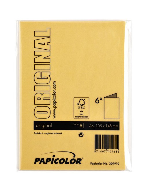 * Gekleurde dubbele kaarten A6. * In verschillende kleuren beschikbaar. * Afmeting 105x148mm, gevouwen. * 210 grams papier. * Pak a 6 stuks. * Geschikt voor hobby doeleinden. * In dezelfde kleuren zijn ook enveloppen en A4 papier beschikbaar.