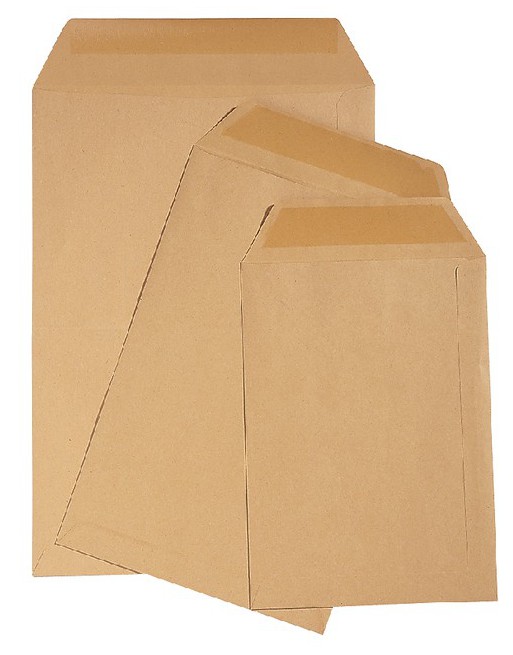*90-100gr. * Bruin kraftpapier. * Met gegomde klep. 1 doos x 250 stuk