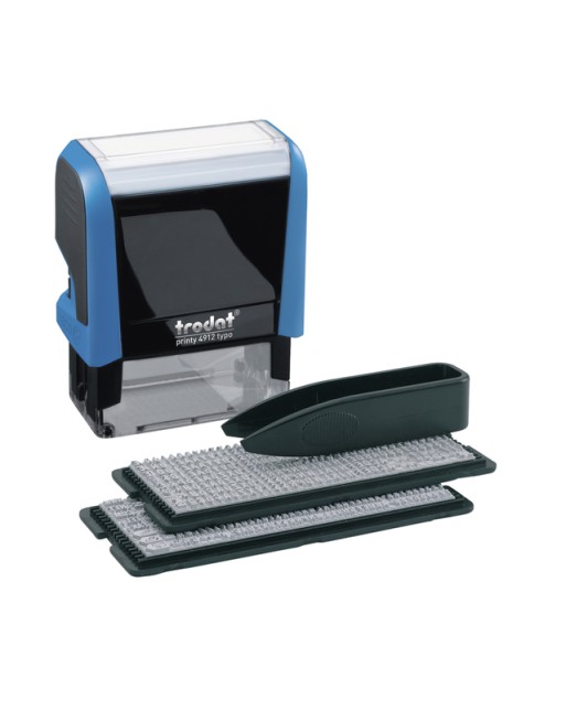 * Trodat Printy™ 4912, tekststempel met zwarte inkt. * Incl. pincet en twee lettersets (6003 = 3mm en 6004 = 4mm) om snel en eenvoudig uw gewenste tekst in te stellen. * Afdrukformaat 47x18mm, met plaats voor maximaal 4 regels tekst. * Inkt is documentecht volgens DIN14145-2. * Klimaatneutraal.