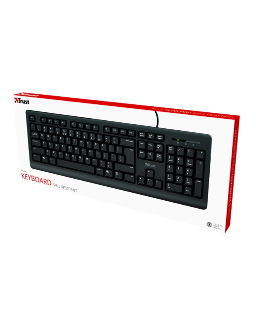* Toetsenbord op volledige grootte voor optimale efficiëntie en productiviteit. * Stil typen, voorkomt dat gezinsleden of collega's worden gestoord. * Morsbestendig ontwerp als bescherming tegen vloeistoffen. * 1,8m kabellengte, plaats het toetsenbord overal op een bureau.