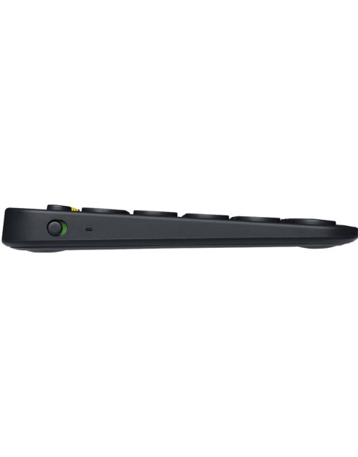 * Minimalistisch toetsenbord voor computers, tablets en telefoons. * Het dunne, lichtgewicht toetsenbord is uitgerust met Bluetooth zodat je deze thuis en onderweg kunt gebruiken. * Type verbinding: Bluetooth Classic (3.0). * Draadloos bereik: 10m (het draadloze bereik kan variëren, afhankelijk van omgevings- en computeromstandigheden). * Windows 10 of later, Windows 7 10 of later, macOS 10.15 of later, iPadOS 13.1 of later, iOS 11 of later, Chrome OS Android 7 of later. * Batterij: 2xAAA (meegeleverd). * Batterijlevensduur: 24 maanden. * Statuslampjes (led): Batterij-led, 3 Bluetooth-leds. * Speciale toetsen: Sneltoetsen (Start, Terug, App-schakelaar, Contextmenu), Easy-Switch. * Verbinden/stroom: Aan-uitschakelaar. * Afmetingen HxBxD 124x279x16mm. * Gewicht: 423gr (met batterijen).
