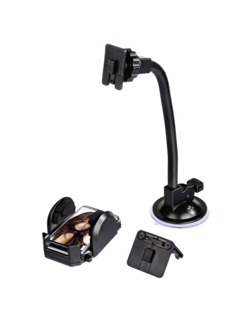 * Makkelijk te bedienen dankzij te verstellen houderwangen voor een individuele aanpassing op het toestel. * Het toestel kan dankzij een kogelscharnier 360° worden gedraaid en is qua hellingshoek instelbaar, perfect voor hoog- of dwarsformaat. * Zeer flexibele arm voor individuele aanpassing. * Geschikt voor iedere smartphone met en zonder case of beschermhoes.