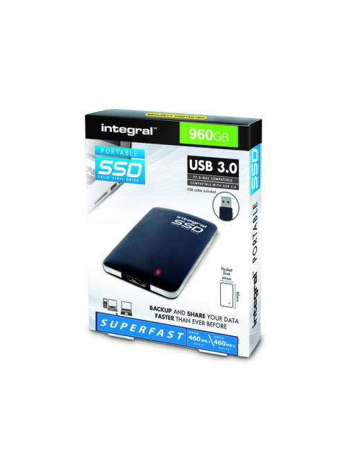 * De Integral USB 3.0 Portable Solid State Drive is klein, lichtgewicht, robuust en ultrasnel. * Maak moeiteloos back-ups, bewaar en deel uw digitale bestanden met een SSD die kleiner, lichter en duurzamer is dan een draagbare HDD en die de nieuwste SuperSpeed USB 3.0-interface gebruikt om gegevens tot 10 keer sneller over te dragen dan USB 2.0.