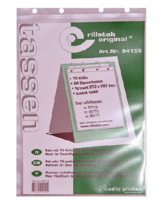 * Tafelflipover vervaardigd uit kunststof materiaal. * Voorzien in de rug van een 4-rings zilverkleurig rond mechaniek ø 16mm. * Inclusief 10 hoezen. * Zeer eenvoudig op te zetten middels drukknopsluiting waardoor een stevig driehoeksmodel ontstaat. * Kleur zwart 1 stuk