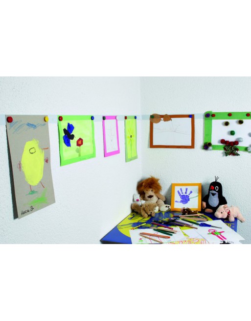 * Zelfklevende magneethoudende metalen wandlijst op rol in handige dispenser. * Eenvoudig op een wand aan te brengen en met magneten informatie, tekeningen,.posters e.d. ophangen. * Kan zelfs door de hoek bevestigd worden, zo kunt u een (kantoor)ruimte geheel.voorzien van een informatie lijn. * Gemakkelijk met een schaar op de juiste lengte af te knippen. Materiaal dikte is 0.13mm. * 3 jaar garantie. 1 rol x 1 stuk