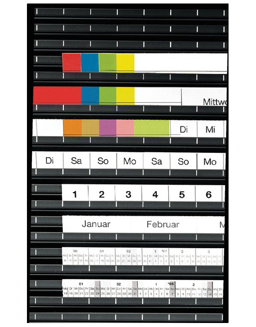 * Voor het markeren van langere planningsperioden. * Is geschikt voor non-permanente OHP-markers (afnemen met een vochtige doek) of bordmarkers (droog afnemen). * Magneetsterkte ca. 50g/cm2 * Dikte ca. 1,7mm. * Verkrijgbaar in zwart, rood, blauw, groen en geel. 1 set x 12 stuk