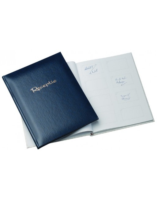 * Receptiealbum met zachte kaft van Balacron kunstleder, voorzien van het woord "Receptie". * 48 bladen.* De rechterpagina is bedrukt met 6 vakjes. * Formaat 200x265mm. 1 stuk