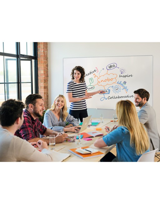 * Magnetisch emaille whiteboard. * Oppervlak levert een superieur niveau van uitwisbaarheid voor regelmatig gebruik. * Modern smal en stijlvol frame levert een meer toegankelijk en optimaal schrijfoppervlak op het whiteboard. * InvisaMount™ systeem maakt installatie eenvoudig en bevestiging wordt mooi weggewerkt achter het whiteboard. * Een stijlvolle pennengoot voor het opbergen van whiteboard markers en wissers. * Geleverd met een Nobo whiteboard marker. * 25 jaar garantie op het oppervlak. * Formaat: 2400x1200mm.