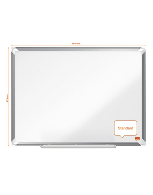 * Magnetisch emaille whiteboard. * Oppervlak biedt een superieur niveau van uitwisbaarheid voor regelmatig gebruik. * Voorzien van een modern, stijlvol aluminium frame. * Bevestigd aan de wand door traditionele hoekmontage. * Een ruime pennengoot voor handige opberging van whiteboard markers en wissers. * Geleverd met een Nobo whiteboard marker. * 25 jaar garantie op het oppervlak. * Formaat: 600x450mm.