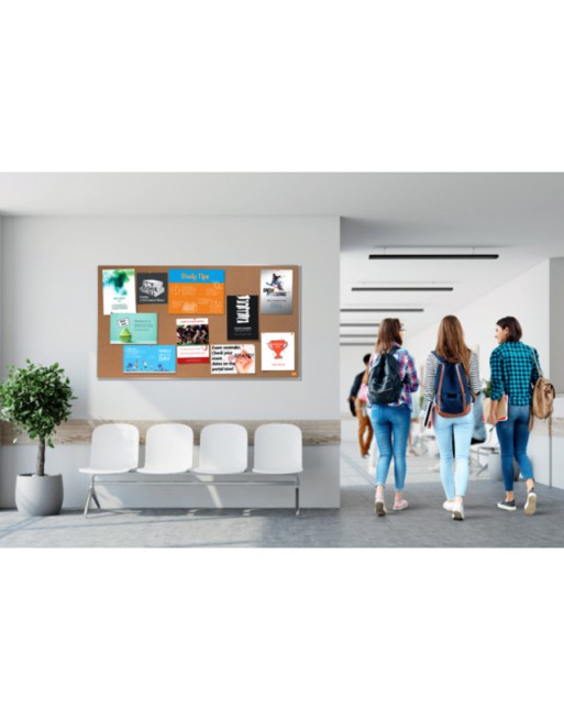 * Widescreen formaat kurken memobord. * Zelf-herstellend kurken oppervlak om boodschappen op weer te geven waarop spelden stevig vastgeprikt kunnen worden. * Modern smal en stijlvol frame biedt een beter toegankelijk en optimaal displayoppervlak op het memobord. * InvisaMount systeem zorgt voor eenvoudige installatie en bevestiging wordt netjes weggewerkt achter het memobord. * Formaat: 1220x690mm.