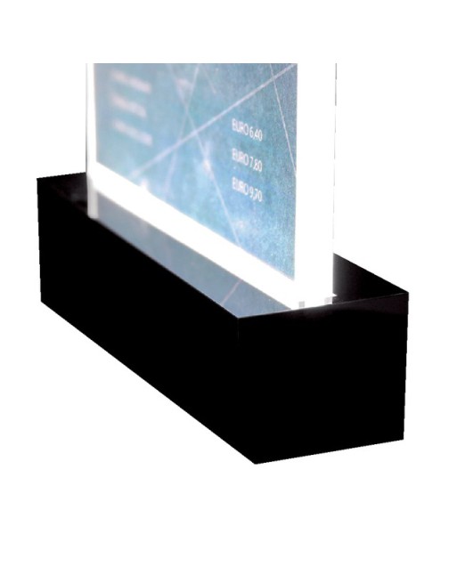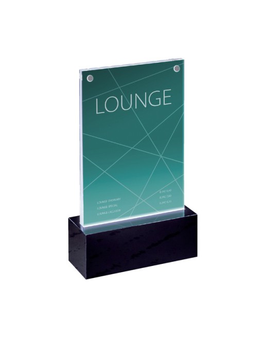 * Deze hoogwaardige LED-tafelstandaard met edel glanzende sokkel verlicht uw informatie stijlvol. * Tafelstandaard vervaardigd van hoogwaardig acryl. * De LED-verlichting is geïntegreerd in de standaard. * Tweezijdige presentatie van oa. menu- en drankkaarten, reclame, aanbiedingen. * De inserts zijn eenvoudig te verwisselen. * De standaard is voorzien van een aan/uit schakelaar. * De brandtijd is circa 250 uur en het werkt op 2 x 1.5V AA-batterijen (deze worden niet meegeleverd). * Papierformaat A6. * Afmetingen 116x195x45mm. 1 stuk