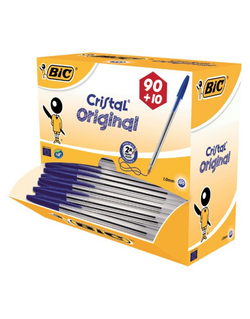 * De wereldberoemde Cristal: symbool voor kwaliteit en schrijfplezier. * Ideaal voor dagelijks gebruik. * Geventileerde dop in schrijfkleur. * Voorzien van officieel NF ecologisch certificaat. * Schrijfbreedte medium. * Bic balpennen voldoen aan de ISO12757-2 norm. 1 doos à 90 stuks + 10 gratis