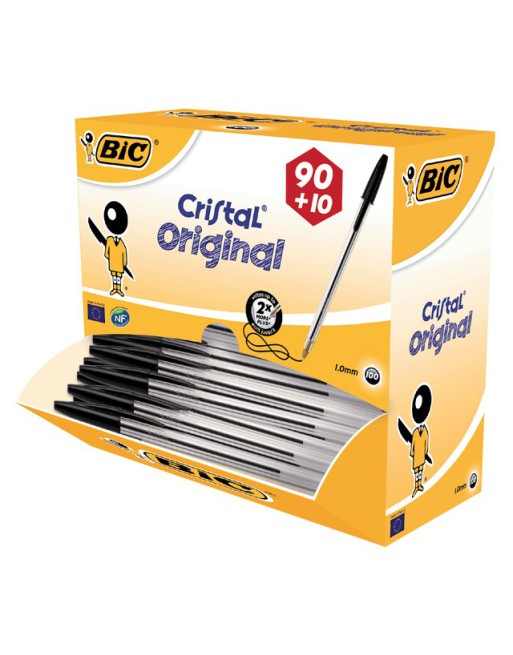 * De wereldberoemde Cristal: symbool voor kwaliteit en schrijfplezier. * Ideaal voor dagelijks gebruik. * Geventileerde dop in schrijfkleur. * Voorzien van officieel NF ecologisch certificaat. * Schrijfbreedte medium. * Bic balpennen voldoen aan de ISO12757-2 norm. 1 doos à 90 stuks + 10 gratis