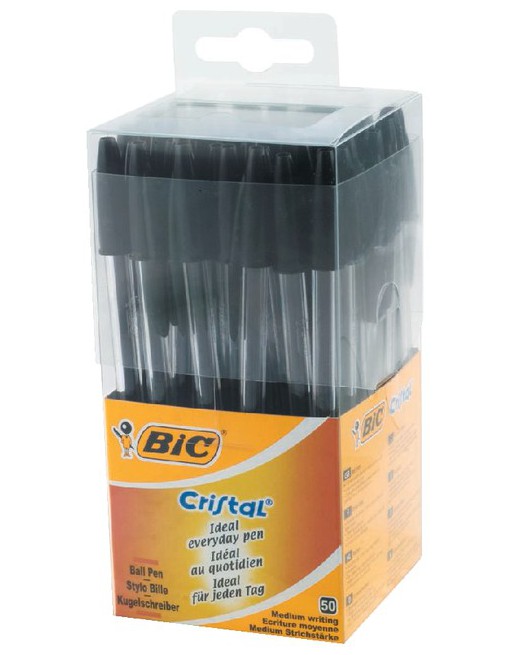* De wereldberoemde Cristal: symbool voor kwaliteit en schrijfplezier. * Ideaal voor dagelijks gebruik. * Geventileerde dop in schrijfkleur. * Voorzien van officieel NF ecologisch certificaat. * Schrijfbreedte 0,32mm - kogelbreedte 1,0mm. * Verpakt in transparante box. * Bic balpennen voldoen aan de ISO12757-2 norm. 50 stuk
