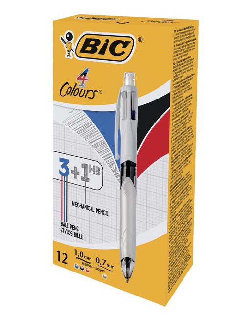 * Multifunctional balpen 3+1HB. * Met 0.7mm drukpotlood. * Inclusief gom top. * Rubberen grip. 12 stuk