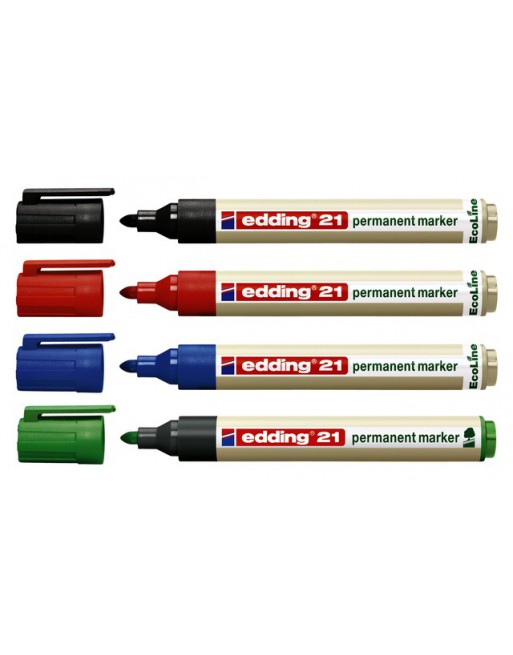 * Marker met reukarme inkt zonder toevoeging van xyleen/tolueen. * Permanente en watervaste marker voor schrijven en markeren op bijna alle materialen. * Ronde punt met een schrijfdikte van 1,5-3mm. * Minstens 96% van de gebruikte kunststof is van gerecycled materiaal en 83% daarvan is gemaakt van post consumer materiaal. * Navulbaar met edding navulinkt MTK25. 10 stuk