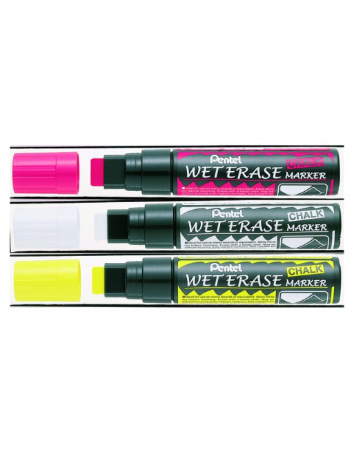 * Krijtstiften met een jumbo schrijfpunt. * Ideaal voor glas, whiteboards en metaal. * NIET geschikt voor poreuze oppervlakken. * Eenmaal droog loopt de inkt niet uit, ook niet bij regen. * Met een vochtige doek verwijderbaar. Schrijfbreedte 8-16mm. 1 stuk