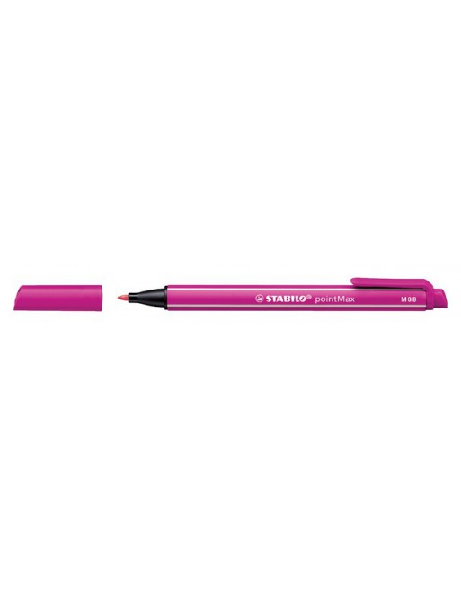 * De STABILO pointMax is een innovatieve fineliner met een zeer intense kleur en geurloze ink op waterbasis. * Door de unieke robuuste punt is deze pen geschikt om mee te schrijven en fijne lijnen te tekenen. * De nylon punt zorgt voor een prettig schrijfgevoel, zelfs bij intensief gebruikt. * De pen kan 24 uur zonder dop zonder uit te drogen. * Geventileerde dop die op het uit uiteinde van de pen kan worden geplaatst met handige clip. * De lijndikte van de fineliner is 0,8 mm. 1 stuk