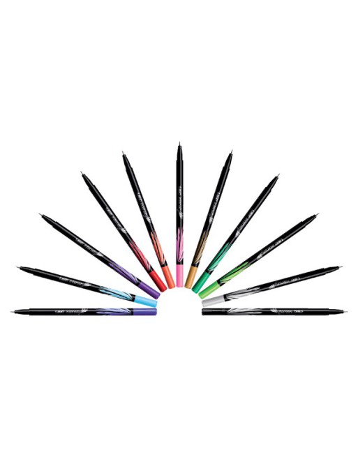 * Ideaal om te schrijven, kleuren en ontwerpen. * Drukt niet door op het meeste papier. * Het metalen kokertje beschermt de punt bij gebruik van een sjabloon, meetlat of andere harde rand. * Ideaal voor fijn schrijven, tekenen en schetsen. * Schrijfbreedte 0,4mm - kogelbreedte 0,8mm. 12 stuk