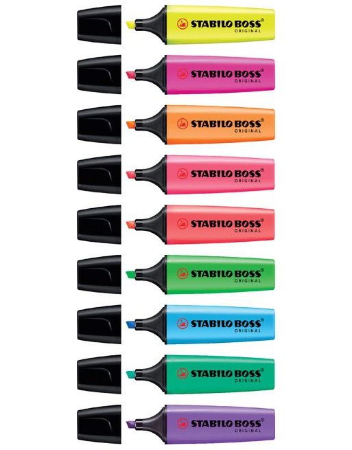 * Fluorescerende markeerstift. * Geschuinde schrijfpunt voor dikke en dunne lijnen. * De transparante kleuren blijven helder. * Gepigmenteerde inkt op waterbasis. * Houder en dop van polypropyleen. * Alle STABILO markeerstiften zijn na 4 uur zonder dop nog steeds klaar voor gebruik. * Schrijfbreedte 2-5mm. 1 stuk