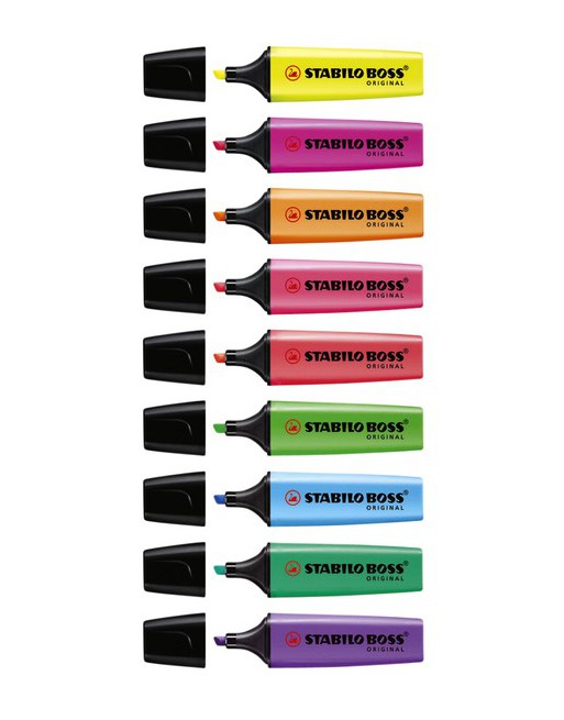 * Fluorescerende markeerstift. * Geschuinde schrijfpunt voor dikke en dunne lijnen. * De transparante kleuren blijven helder. * Gepigmenteerde inkt op waterbasis. * Houder en dop van polypropyleen. * Alle STABILO markeerstiften zijn na 4 uur zonder dop nog steeds klaar voor gebruik. * Schrijfbreedte 2-5mm. 1 blister à 4 stuks