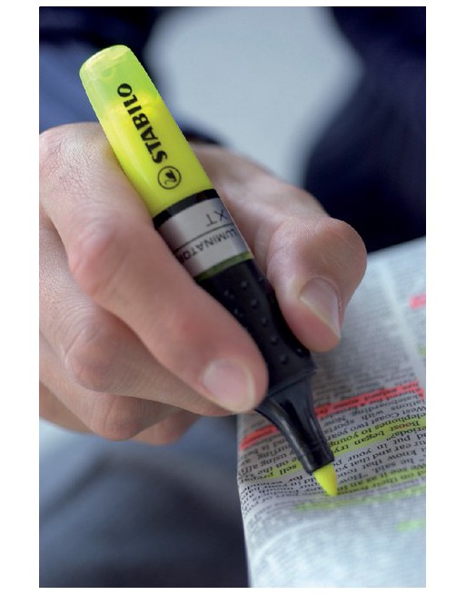* Zeer lange levensduur. * Ergonomische vormgeving. * Droogt niet uit. * Alle STABILO markeerstiften kunnen 4 uur zonder dop zonder uit te drogen. * Airplane safe: lekt niet bij grote drukverschillen. * Geeft resterende inktniveau aan. * Schrijfbreedte 2-5mm. 1 stuk