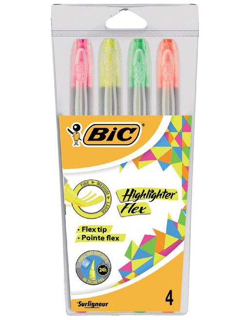 Markeerstift Bic flex ass blister à 4 kleuren