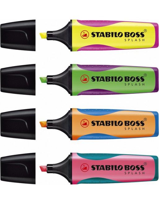 * De vertrouwde kwaliteit van de STABILO BOSS ORIGINAL markeerstift, maar dan met een knallend color blocking design. * Perfect voor elke scholier of student!* De antislip gripzones aan de zijkant van de markeerstift geven ‘m niet alleen een gave look, ze zorgen ook voor ontspannen markeren, thuis en op school. * Optimale grip verzekerd, zelfs in stressvolle situaties! * Ook bij urenlang studeren kun je vertrouwen op deze markeerstift, de dop kan er 4 uur af blijven zonder dat de stift uitdroogt. * Wel zo relaxt! * De inkt is geurloos en super fluorescerend. * De beitelpunt heeft 2 schrijfbreedtes, 2 en 5 mm, voor onderstrepen én markeren. * Inhoud blister: groen, geel, oranje en roze. 1 blister à 4 stuks