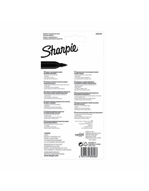 * De originele Sharpie inkt droogt snel, is waterbestendig en de kleur vervaagt niet. * Permanente inkt voor op papier, plastic, metaal en de meeste andere oppervlakken * In de kleuren zwart, rood, blauw en groen. 1 blister à 4 stuks