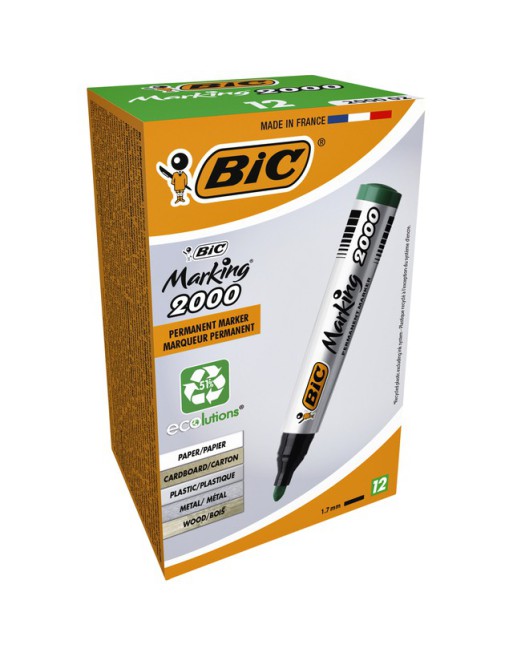 * Viltstift 2000 gemaakt uit 51% gerecycleerd materiaal. * Duurzame geblokkeerde punt. * Permanente inkt op alcoholbasis. * Neutrale geur. * Voldoet aan ISO 554. * Schrijft op papier, karton, plastic, glas. * Inkt niet uitwasbaar. * Lange levensduur door groot inktreservoir. * Schrijfbreedte 1,7mm. 12 stuk