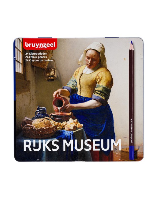* Het Melkmeisje van Johannes Vermeer, een hoogtepunt van een bezoek aan het Rijksmuseum, siert de buitenkant van dit blik met mooie kleurpotloden. *De potloden zijn van hoge kwaliteit en hebben een sterke dikke kleurkern voor een goede kleurafgifte. *Gebruik een kleurpuntenslijper voor de optimale levensduur van de kleurpotloden. *