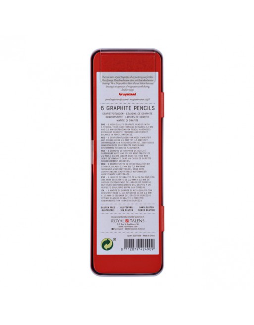 De potloden met sterke dikke grafietkern (variërend van 2,2 tot 3,5 mm, afhankelijk van de hardtegraad) hebben een zeer goede grafietafgifte en onderlinge afstemming tussen de hardheden. * Het blik bevat 6 hardheden: HB, 1B, 2B, 4B, 6B, 8B. * Gebruik een grafietpuntenslijper voor de optimale levensduur van de grafietpotloden. * Bruynzeel Expression is geschikt voor elke volwassene die graag creatief bezig is. * Kortom, een mooie opstap voor de beginnende kunstenaars! 1 blik à 6 stuks